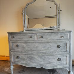 Hand-Painted Vintage-Style Dresser with Mirror – $110 OBO ✨$110Denver, CO
