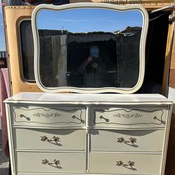 Bassett furniture 6 drawers dresser with mirror French provincial style off white/L54”*D19”*H33”(address in description) 👇delivery 🚚 available with$345Thornton, CO