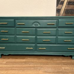 Large Emerald Green Solid Wood Dresser w/ Mirror – 9 Drawers, Brass Hardware$450Englewood, CO