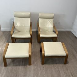2 IKEA POÄNG Chairs with Ottomans – White Leather – Set of 2$300Aurora, CO