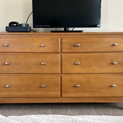 Solid wood dresser 6 drawers light brown L58β*D18β*H29β(address in description) πdelivery π available within 15 miles for extra $55 delivery fees Pi$135Northglenn, CO