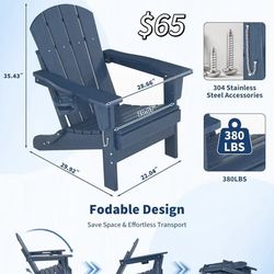 😀 Folding Adirondack Chair, All-Weather HDPE Outdoor Chair, Wooden Textured with Cup Holder for patios, Decks, Gardens, fire pits, Navy Blue$65Denver, CO