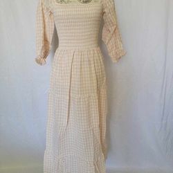 Women's Boho Flowy Cottagecore Puff Sleeve Off The Shoulder Summer Casual Plaid Ruffle Midi Long Dress NEW.