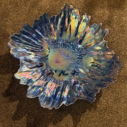 Akcam Turkish art glass bowl, iridescent sunflower-style serving platter/ centerpiece$70Denver, CO