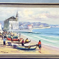 VTG Original Oil Painting Beach At Cascais, Portugal By Manuel Gregorio Pereira$1,000Denver, CO