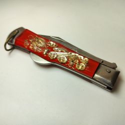 Vintage 1960s-1970s Japanese Folding Stiletto - 7" Red Dragon Scale Knife$70Denver, CO