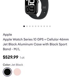 Apple Apple Watch Series 10 GPS + Cellular 46mm Jet Black Aluminum Case with Black Sport Band - M/L$425Denver, CO