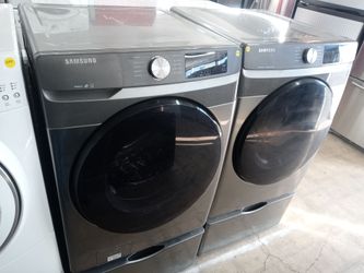 Samsung gray front load washer and dryer set on pedestals - Free delivery$800Denver, CO