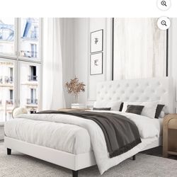 Queen Bed Frame W/Headboard Diamond Button Tufted Style White$190Aurora, CO