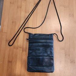 black leather multi-pocket crossbody bag, 6.75"×4.75" , good condition $5Parker, CO