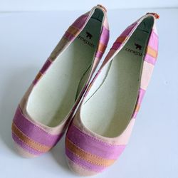 Crewcuts Girls Sz 1 Pink Orange Striped Ballet Flats Canvas Slip-On Shoes New$65Westminster, CO