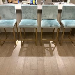 4 Teal Velvet Bar Stools Gold Base$300Denver, CO