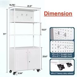 ๐ฅจ31.5" W x 70.86" H x 15.7" D Freestanding Cabinet with Pegboard and Hook Cupboard Storage Organizer Shelves in White$149Thornton, CO