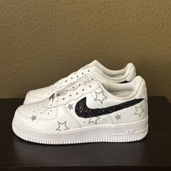 Custom Nike Af1s (Black High quality Sparkle Nike Logo With Gray Stars $160Aurora, CO