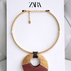 ZARA Gold Tone Torque Necklace Geometric Pendant Brown New Designer Accessories$38Westminster, CO