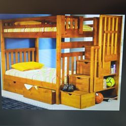 Solid Wood Twin & Full Bunk Bed Frame With Storage Stairs$795Denver, CO