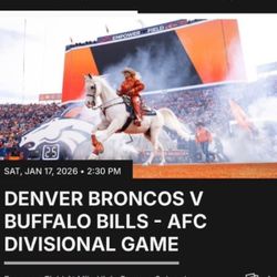 Denver Broncos vs Buffalo Bills AFC Divisional Playoffs Saturday 1/17/26 @ 2:30pm$625Westminster, CO