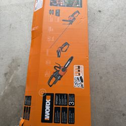 Worx 22” Hedge Trimmer, 5” Pruning Saw, 10” Cordless Chainsaw Combo Kit $100Littleton, CO