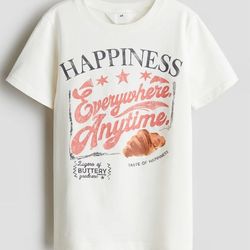 H&M Shirt Cotton Crew Neck Top T Shirt printed Tee Basic 12 14 Large croissant happiness