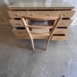 Vintage Wood Writing Desk w/ Glass Top & Matching Chair – 8 Drawers$550Denver, CO