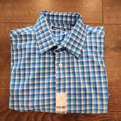 New LANDS END size M, 15- 15.5×36/37 White-Blue Check Spread-Collar Cotton Dress Shirt Men$3Parker, CO
