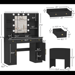 New in a box, 43 inches wide, White Vanity Desk with Lighted Mirror & Power Outlet, Makeup Vanity with 3 Drawers, 4 Shelves, Cabinet & Hair Dryer Hold$190Denver, CO