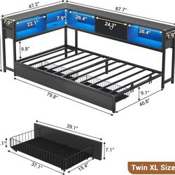 🥨Hasuit Corner Bed Frame Twin XL with Storage Drawers and Bookcase Headboard, Metal Platform Corner Bed Frame with Charging Station and LED Lights, T$168Thornton, CO