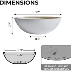 🥨7.7" H x 22" D Round Bowl Fiberstone Planter for Succulent and Lotus with Drainage Hole, Smooth Finishes, Weather Resistant, Included 2 Extra Coco M$78Thornton, CO