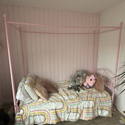 Pink Twin Canopy bed Frame And Mattress $250Denver, CO