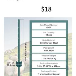😀 VEVOR 3 Feet Fence Post, 10 Pack U-Channel Heavy Duty Metal Fence Posts with 20 Zip Ties & 20 Clips, Sturdy Steel Fence Stakes for Garden Yard, Law$18Denver, CO