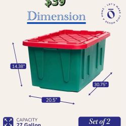 π 2 Pack HOMZ Durabilt, Heavy Duty Plastic Storage Bins with Lids, 27 Gallon, Green/Red - Stackable Container Boxes for Holiday, Attic, and Garage$39Denver, CO