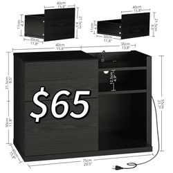😀 LIKIMIO Black Night Stand with Shelves, Charging Station & LED, 2 Drawer Wooden Bedside Table Record Player Stand for Bedroom, Entryway, Large$65Denver, CO