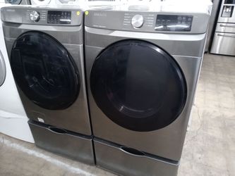 Samsung gray front load washer and dryer set on pedestals - Free delivery$800Denver, CO