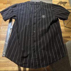 Stussy Baseball Jersey Mens XL Black White Pinstripe Button Up Chest Logo Skater$25Denver, CO