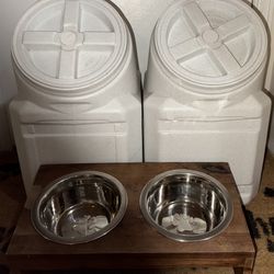 2 Gamma 40lbs pet food storage Barely used and water/food bowls$65Littleton, CO