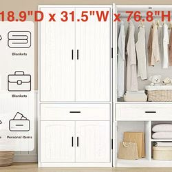 🥨LIKIMIO 77" Tall Armoire Wardrobe Closet, Wooden Wardrobe with 4-Door and Drawer, White Clothes Storage Cabinet with Hanging Rod and Adjustable Shel$179Thornton, CO