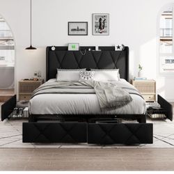 π Full Size HOSTACK Upholstered LED Bed Frame with Storage Drawers, Cute Girls Bed with Adjustable Lotus Headboard, Velvet Princess Platform Bed Fram$146Denver, CO