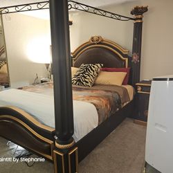 King 4 Poster Wood And Leather Chalk Painted Bed $9,000Denver, CO