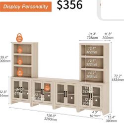 😀 Farmhouse Entertainment Center with Bookshelves, 4-Piece Modular TV Stand with Storage Towers, Glass Doors, Open Shelves, Media Console $356Denver, CO