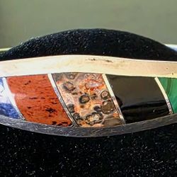 Vintage Mexico Sterling Silver Inlay Multi -Stone Bangle Bracelet 7$150Denver, CO