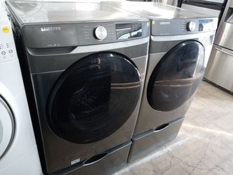Samsung gray front load washer and dryer set on pedestals - Free delivery$800Denver, CO