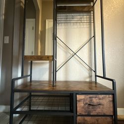 Solid Wood Entryway Hall Tree w/ Bench, Storage & Mirror $250Parker, CO