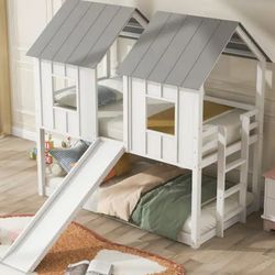 White Twin over Twin House Bunk Bed with Slide and Windows$80Aurora, CO