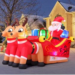 NEW IN A BOX,7.8Ft Christmas Inflatables Outdoor Decorations, Blow Up Santa Claus on Sleigh with 2 Reindeer Gift Box, Built in Rotating Colorful LED L$80Denver, CO