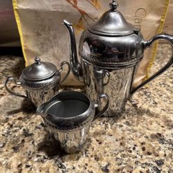 Vintage Cromwell silver coffee/tea pot/beverage pitcher w creamer and sugar$10South Setauket, NY