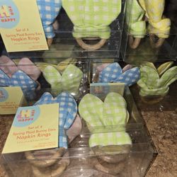 Set of 4 Spring Plaid Bunny Ear Napkin Rings, several boxes available $5Selden, NY