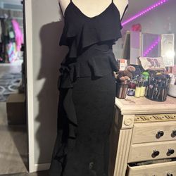 Dark green green gown with off the shoulder & ruched back$70Coram, NY