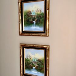 TWO BEAUTIFUL FRAMED VINTAGE KEYE LEE OIL PAINTINGS SET$100East Northport, NY