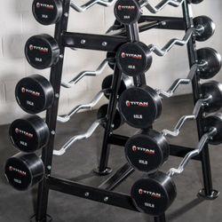 Six (6) Titan Fitness Fixed Barbells And Storage Rack$1,000Nesconset, NY