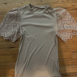 Beige top with lace detailed sleeves size small $10Holbrook, NY